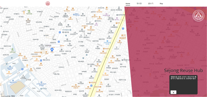 - Map : 재활용 수거함 & 게시글 위치 확인