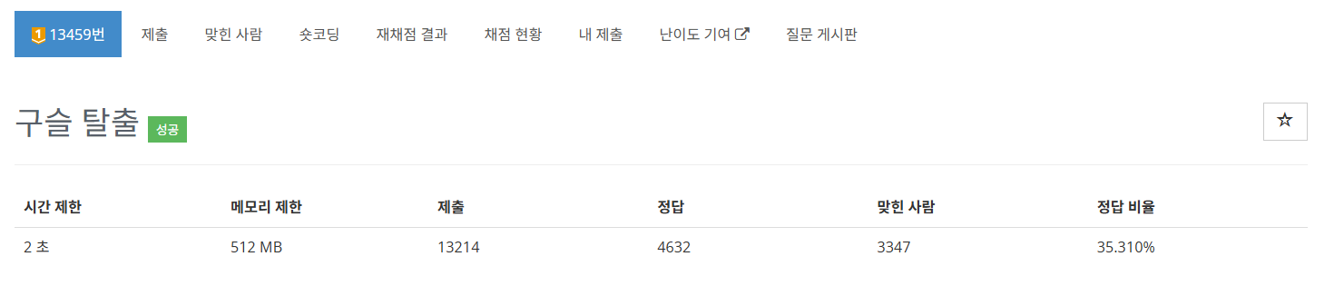 탈출 여부에 따라 답만 1 or 0을 출력하면 된다.